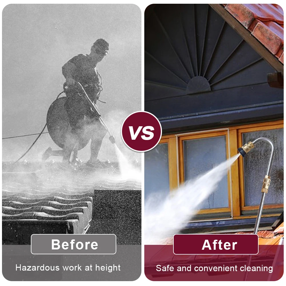 - Versatile spray options let you tackle corners, rims, gutters, roofs, walls, and floors with three rod types: 45° bend, 90° bend, and straight.