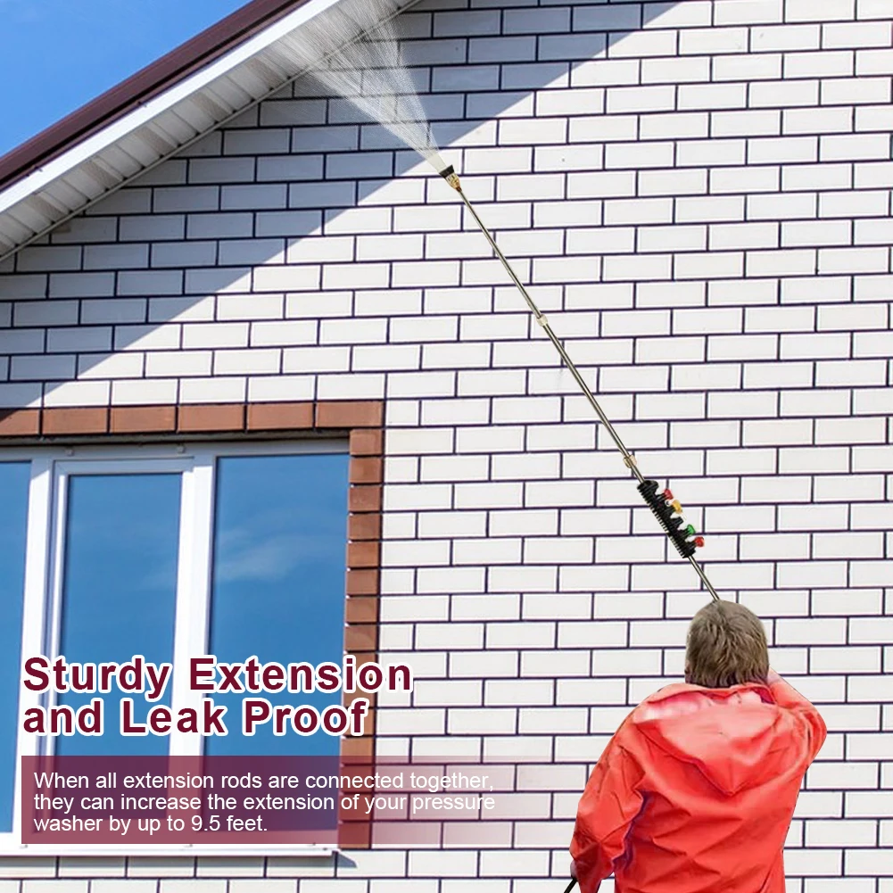 - Sturdy, leak-proof extension: crafted from thick stainless steel, you can reach up to 9.5 feet with a 1/4-inch quick connect, while resisting rust and leaks.