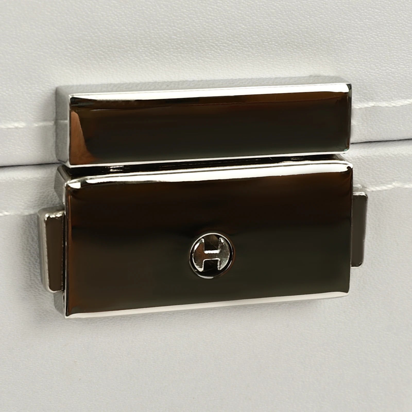 - Tabletop display case in a modern white rectangular design, crafted from MDF, PU, and glass; no assembly required and size 33.5×19×22.5 cm.