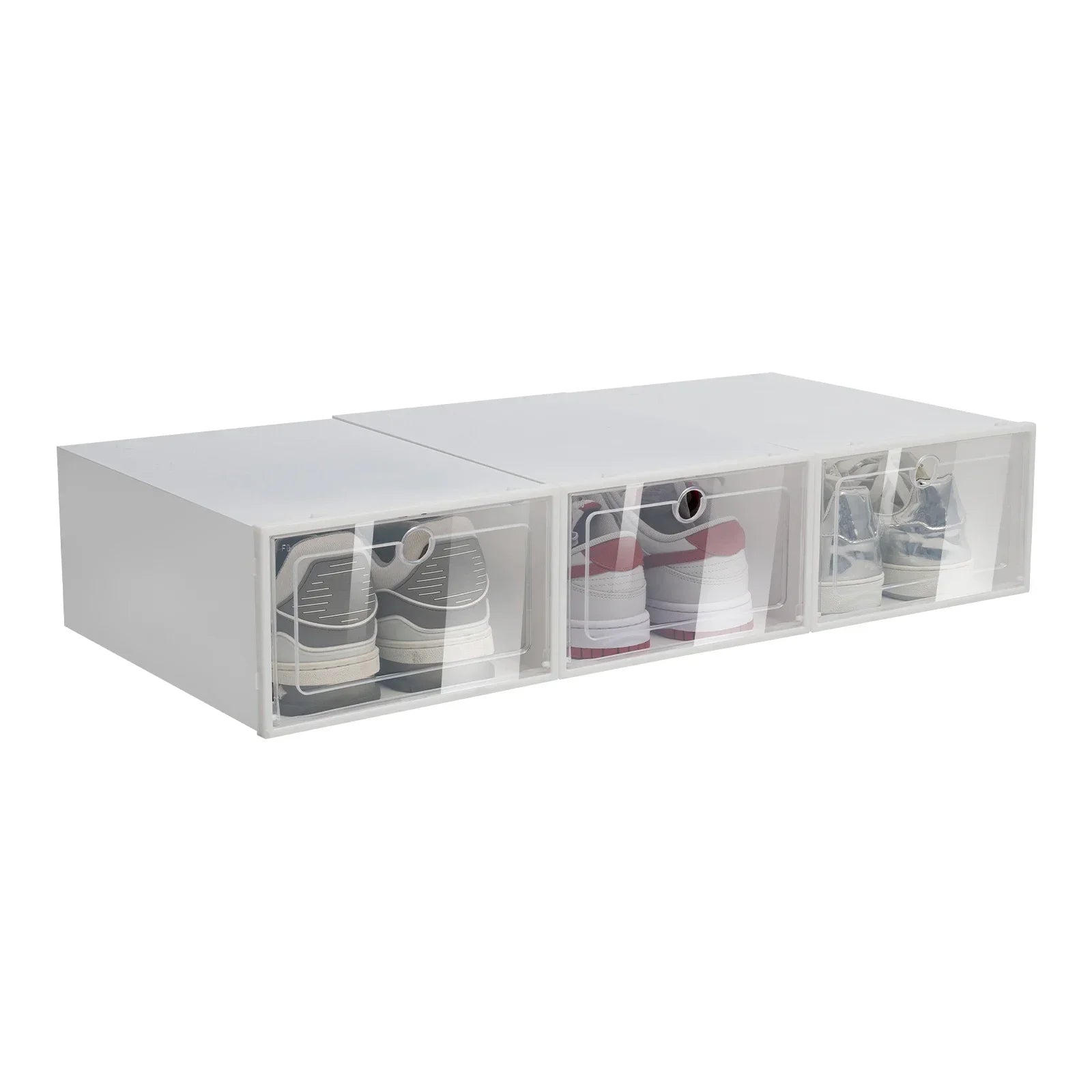 - Durable PP construction keeps boxes sturdy for daily use; each box measures 13 x 9.1 x 5.5 inches and fits most shoes up to US size 10.