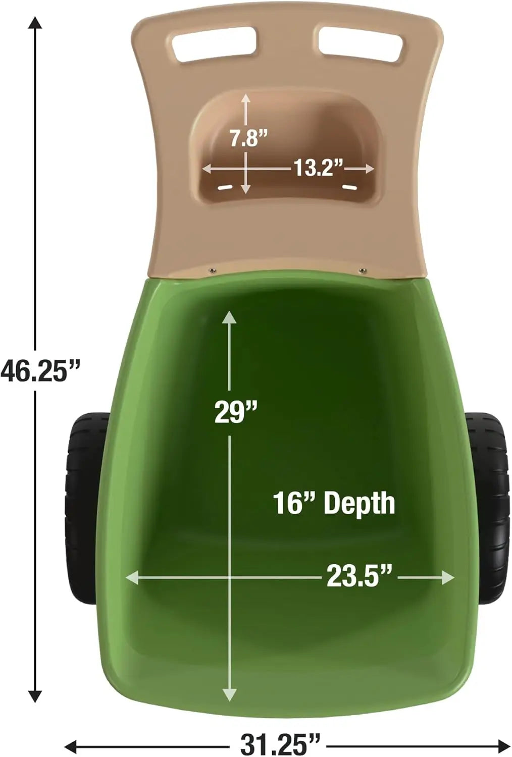 - EXTRA-DEEP WELL with 4 cubic feet of heaped capacity and a flat floor keeps contents level for simple dumping and transport.