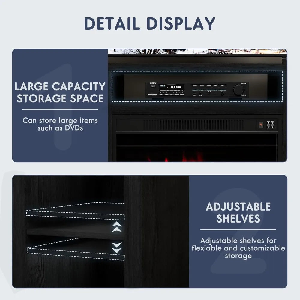 - Solid Structure: Made of premium and Sturdy board, the entertainment center with fireplace has excellent stability and durability. The maximum load capacity of the table top is 220 lbs. Adjustable storage shelfs support up to 20 lbs.