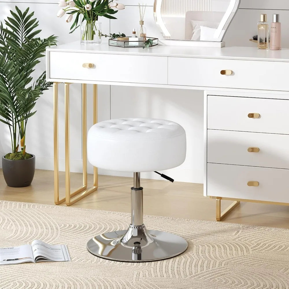 - Comfort and fit: Comfortable PU leather, round seat (~15.8 in) with adjustable height up to 20.5 in, giving you the right seating level for makeup tasks.