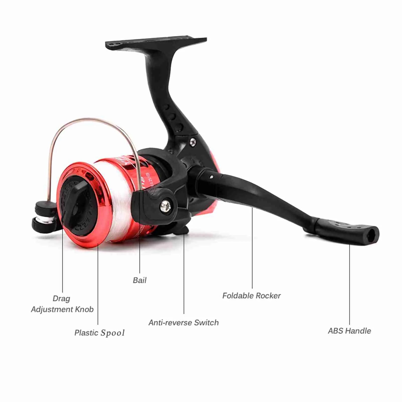 - You get a complete kit for every outing: 2 telescopic rods, 2 spinning reels, a durable nylon bag, assorted lures, hooks, and essential accessories.