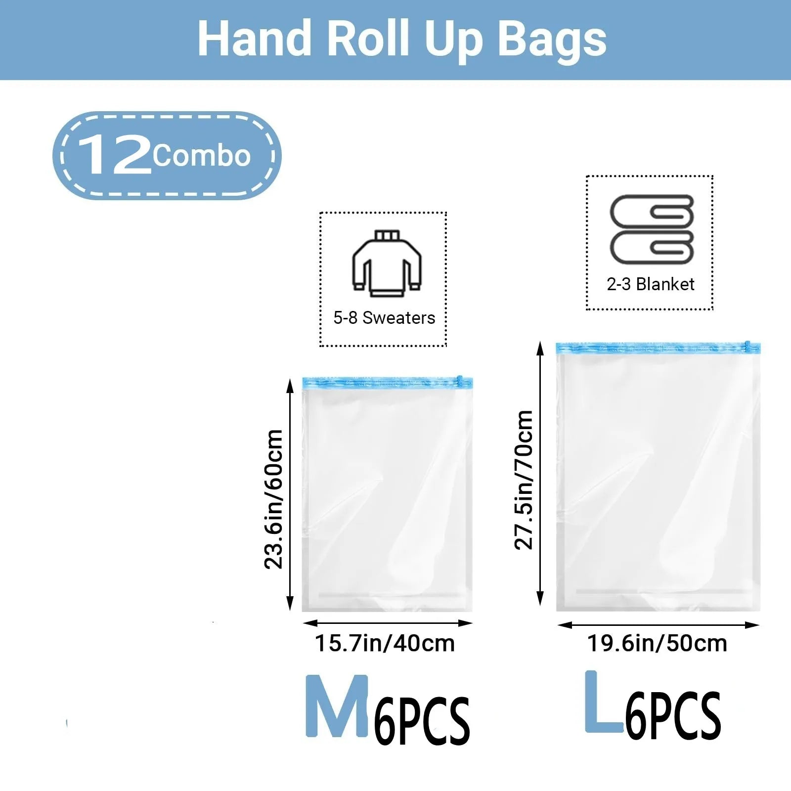 - No pump or vacuum needed: you zip, roll, and seal to compress clothes, towels, pillows, or blankets for faster packing.