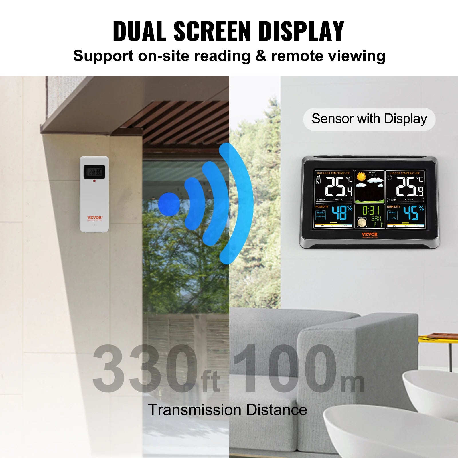 - Monitor conditions over long distances with up to 100 meters of transmission range, receive 24-hour forecasts, and get alerts when your presets are reached.